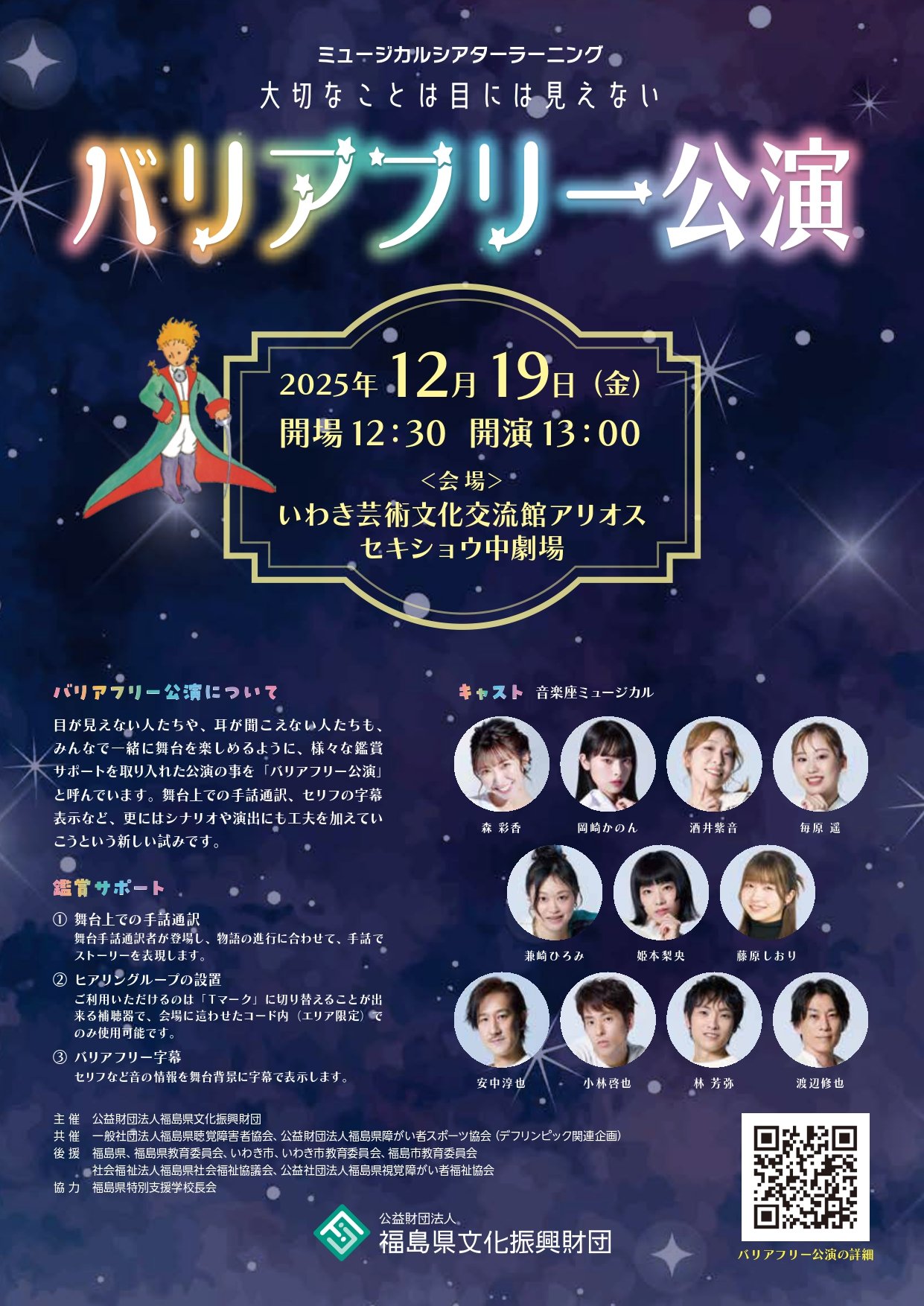 バリアフリー公演 ミュージカルシアターラーニング~大切なことは目には見えない 申込受付中!2025-11-18 続きを読む→