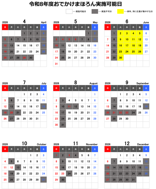 ただし期間内でも休館日や館内行事にて実施が困難な日があります。詳細については「令和8年度 おでかけまほろん実施可能日」をご覧ください。