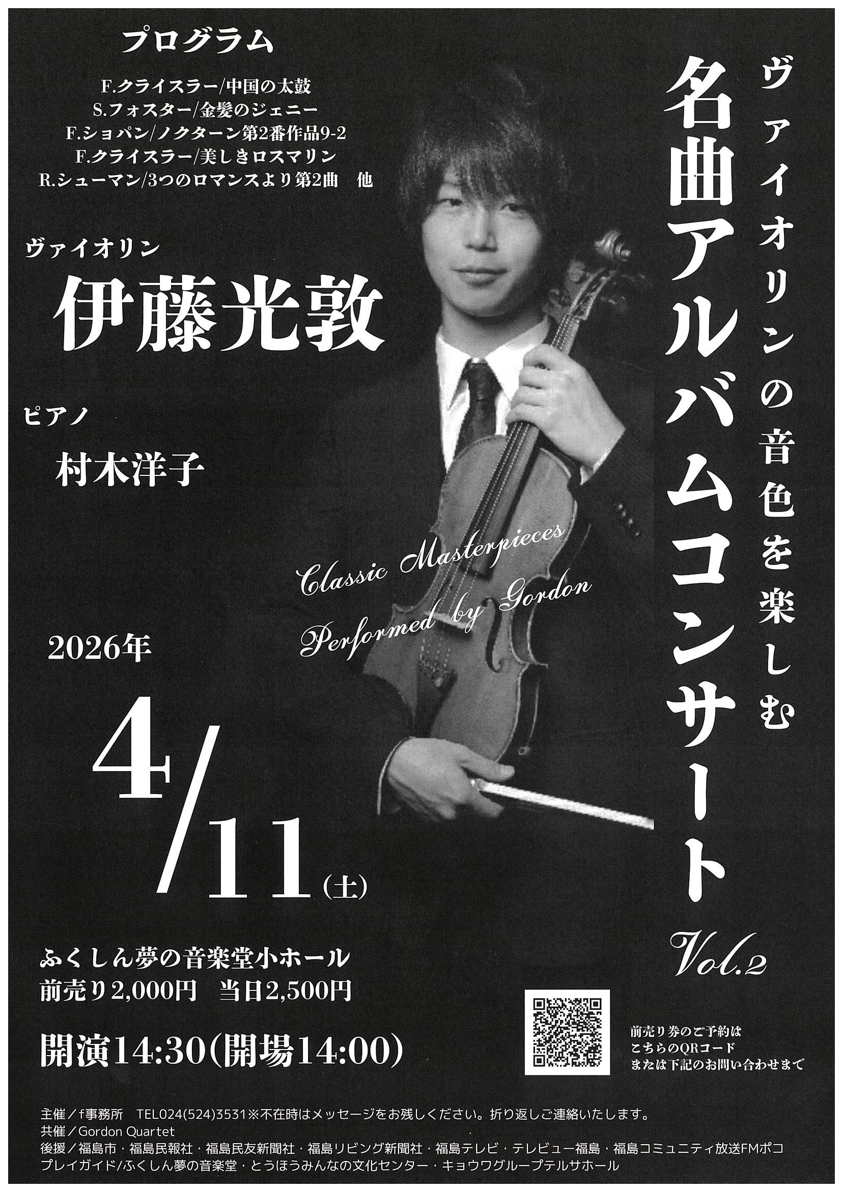 国立音楽大学ヴァイオリン専攻を首席卒業し、数々の受賞歴があるヴァイオリニスト。クラシックの「隠れた名曲」を披露。未就学児入場不可。