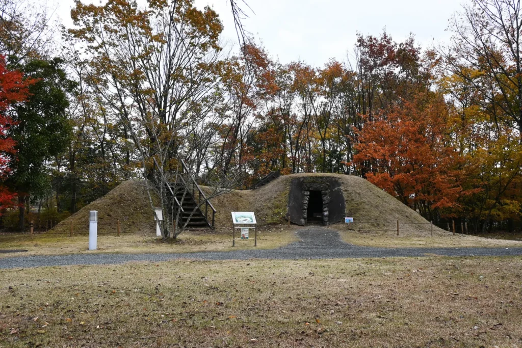 白河市笊内古墳群にあった前方後円墳をもとに復元しました。横穴式石室の内部も見ることができます。