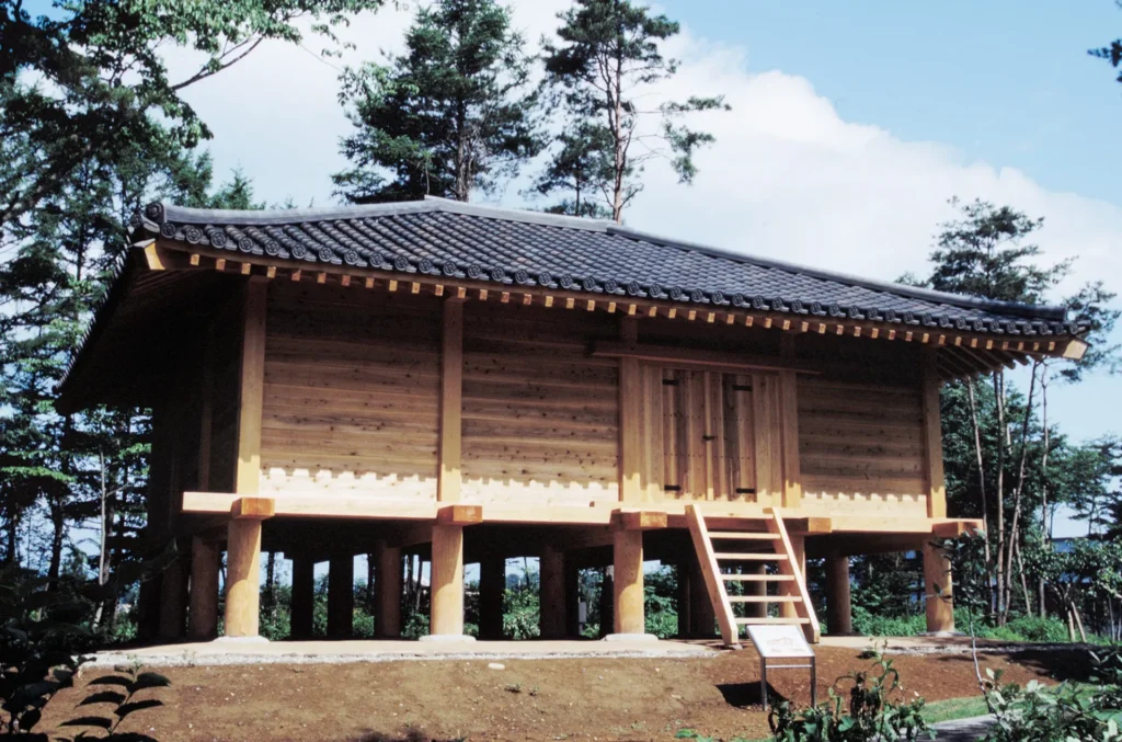 泉崎村関和久遺跡で見つかった掘立柱建物跡をもとに復元した倉庫(正倉)です。