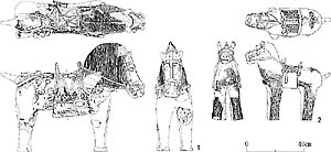 が木製の居木部先端に打ち込まれたものであることが認められている(増田1965)。これは古墳出土鞍がいわゆる和鞍とよばれる鞍とは、構造を異にする可能性が高いことを窺わせる。