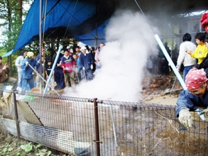 右の写真は、去る11月5・6日に行われた「鉄づくり」イベントのクライマックスのようすです。