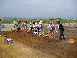★ 発掘調査中 今回、一番遠くから参加された方は、東京都の方で、検索エンジンで「体験発掘」を検索したところ、当館のホームページがヒットしたそうです。 |
