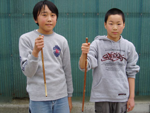 ★ もみぎりで成功! 舞ぎりでの火おこしが成功した後、1組がもみぎりによる火おこしに成功しました。多分、小学生としては最短の時間で、なんと3回も成功させてしまいました。開館以来、一番火おこしが上手な小学生でした。 |