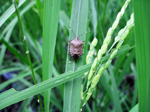 8月24日(火)その4 写真は、ブチヒゲカメムシです。主に現代米(コシヒカリ)に多く発生しています。