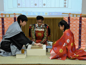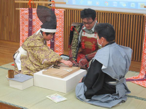 4.小学4年生以下の部 決勝 小学4年生以下の部では、参加者が2名だったため、決勝戦の1試合を行いました。時代衣装に着替えて、いざ対戦。 |