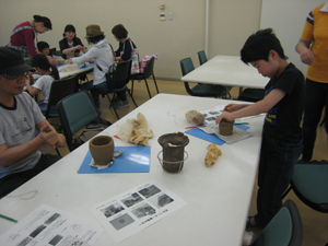 まほろん実技講座「家族で土器づくり」の様子 |