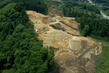 空から見た猪久保城跡